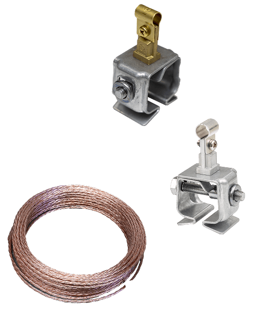 T 型クランプは、雷保護設備における導線交差部に用いる接続金物で、施工性・安全性・軽量化を高水準で実現した製品である。